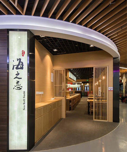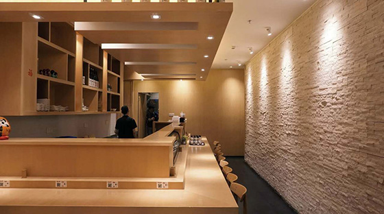 工程簡介:日式風(fēng)格日本料理店門頭裝修效果帶有濃濃的日式風(fēng)情。采用不同的手段,對空間的利用非常合理,將日式的小巧精致溫馨的感覺表現(xiàn)出來。帶給人的第一感覺是沉靜清新,在色彩的搭配上非常和諧,以格林雅琥珀楓木防火板G3012-NT的淡黃色為主色調(diào),配以咖啡色的吊頂和黃灰色的仿磚墻面,再加上格林雅質(zhì)感極強的木紋表現(xiàn),盡顯自然質(zhì)樸之氣,大氣簡約,給人留下深刻印象!