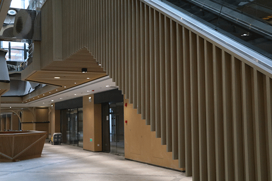 工程簡介:位于珠海橫琴新區的華融琴海灣商業街,在裝修時其掛墻與吊頂整體使用格林雅木紋系列亞熱帶橡木2202-S防火板,最終效果頗具現代風格,色調柔美和諧,簡約的設計理念,多層次的空間塑造,搭配高品味與質量的格林雅防火板,使每一個細節都得到了良好的表現,讓人們在休閑購物之余還可以得到身心的放松與享受!
