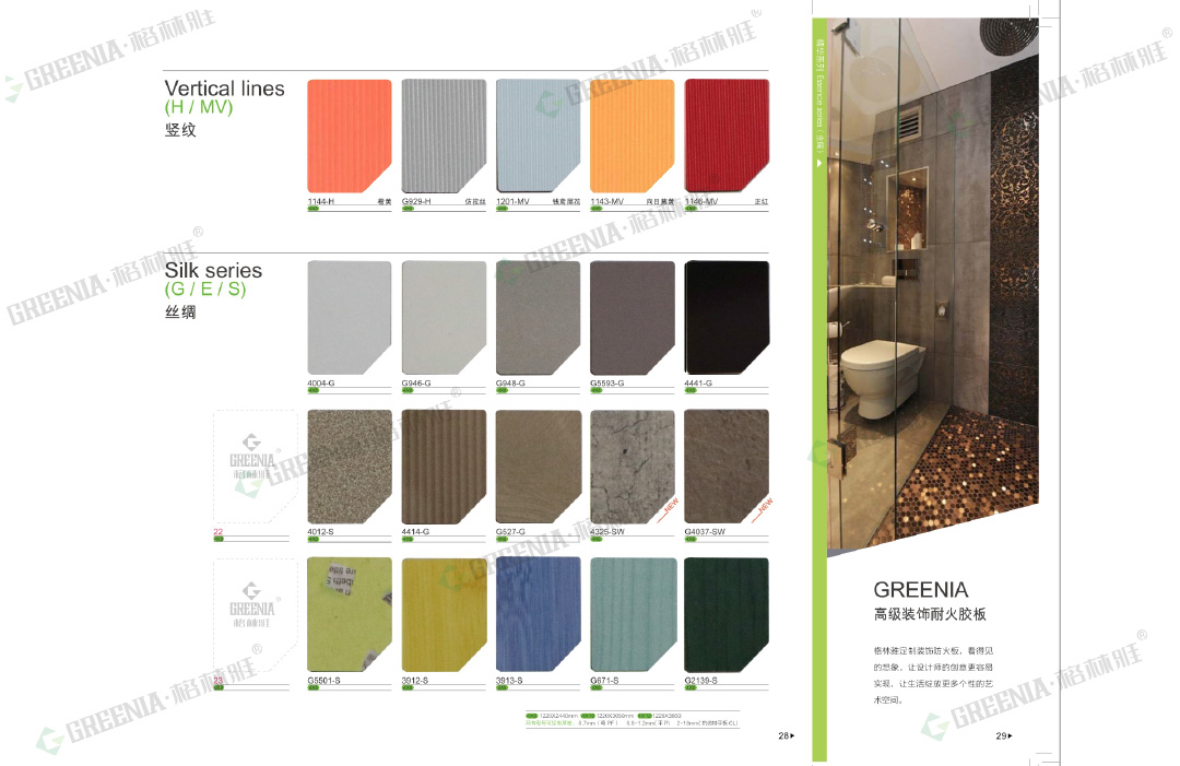 格林雅防火板是一種表面裝飾材料,具有豐富的色彩和各種表面紋理。格林雅高級裝飾耐火板具有: